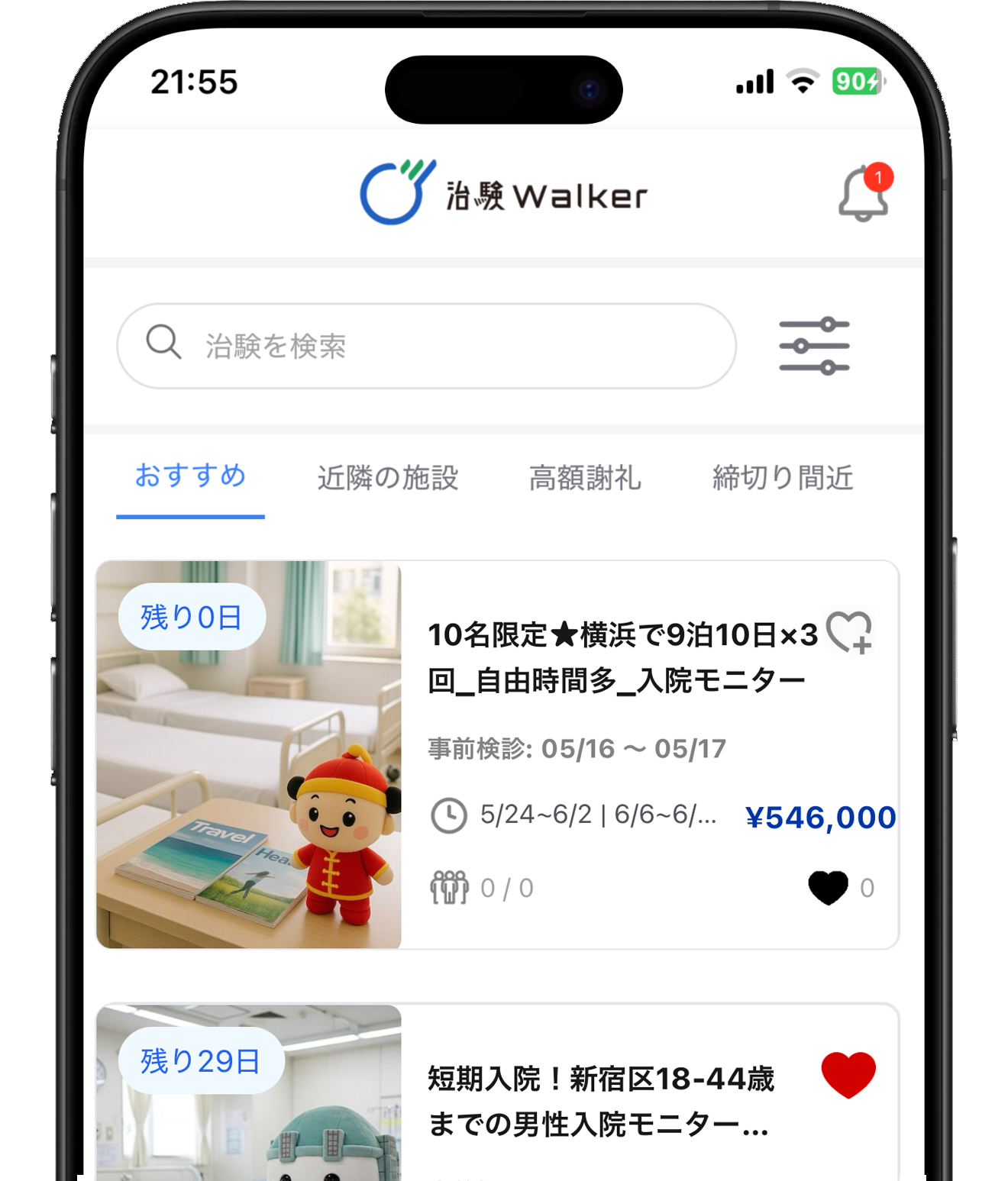 治験Walkerは一般に「治験バイト」と言われる健常者が対象の入院治験に特化。