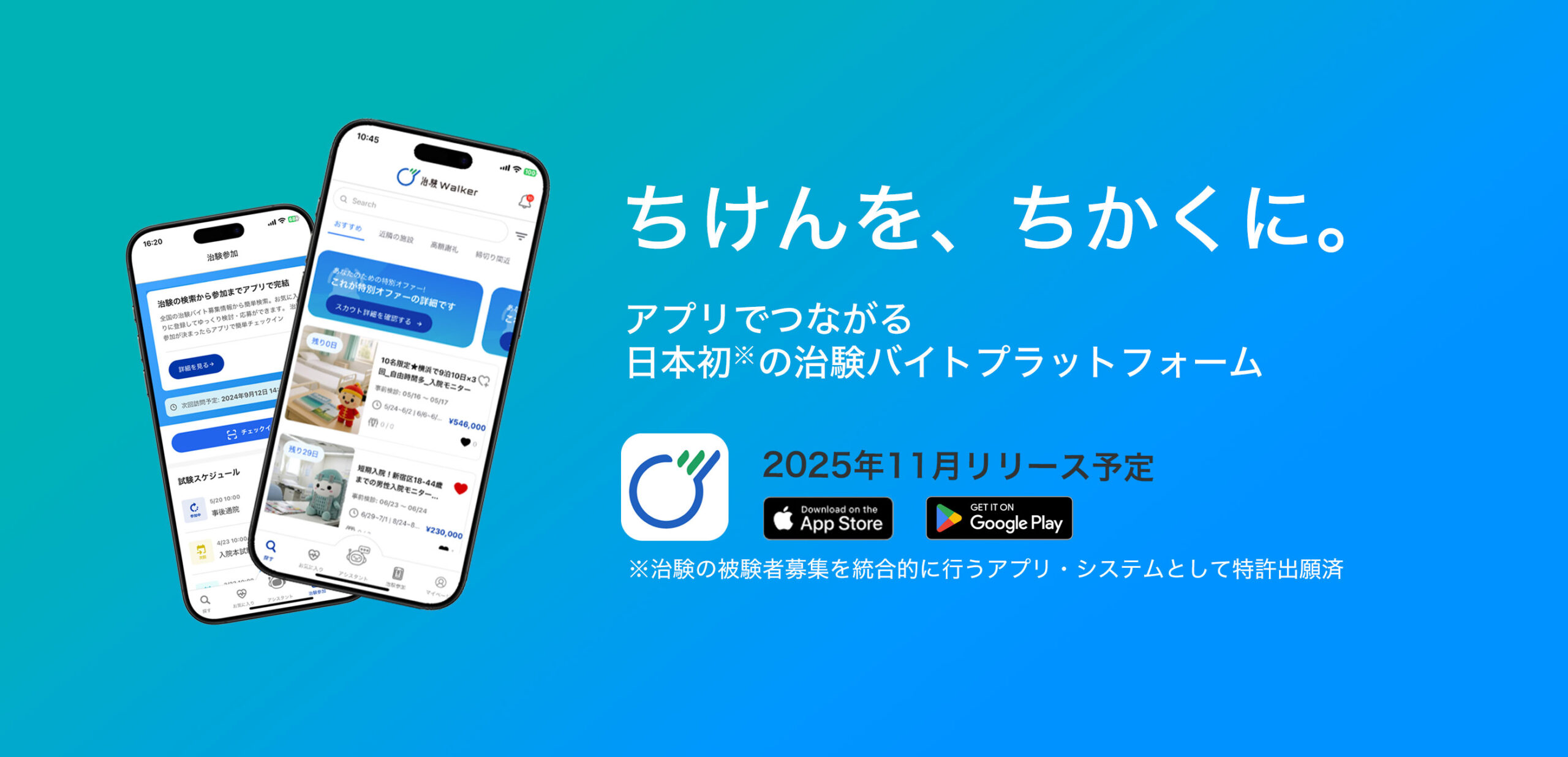 治験探しや相談、アフターフォローまで治験Walkerアプリで完結!面倒な手続きは一切なし。